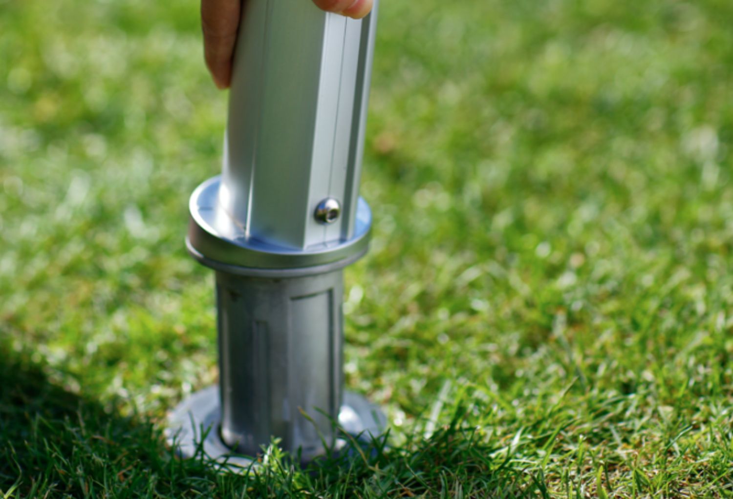 Après avoir installé les bases d'ancrage qui affleurent le sol (non incluse), vous pourrez y insérer les mâts de fixation aisément. Vous obtiendrez ainsi la possibilité d'aménager votre terrain au gré de vos envies ! Notamment libérer facilement votre espace pour la tonte de la pelouse ou le stockage hivernal par exemple.